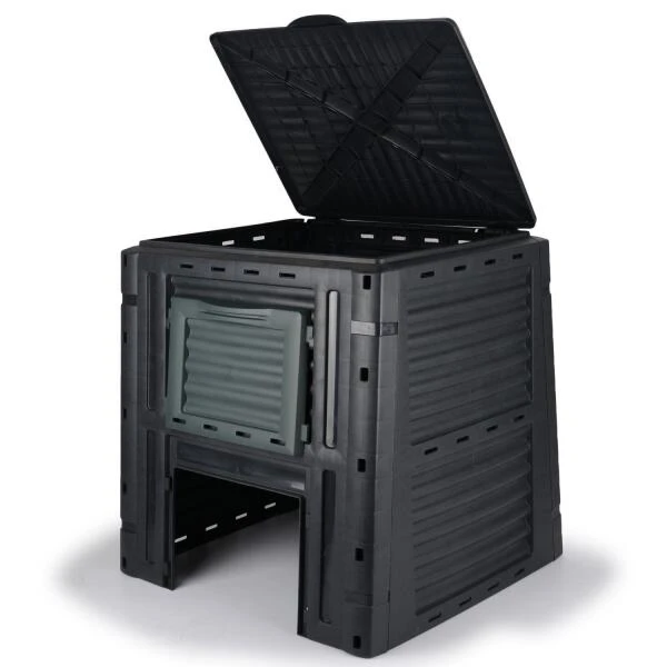 Handig en compact compostvat dat zowel in de grote tuin als in een kleine tuin kan gebruikt worden. Dit zwarte kunststof vat heeft een capaciteit van 450 liter.
