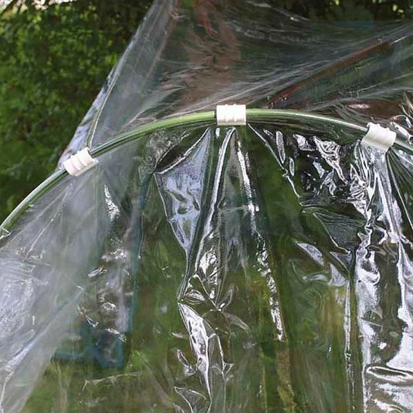 Klemmen voor het vastzetten van folie, insectengaas, weringsnet of zeil aan buisvormige structuren. Passende clips voor buizen met een doorsnede van 10 mm (1 cm). Dankzij de afgeronde opening plaats je deze clips vlot over de buis en kan je ze ook weer vlot wegnemen.